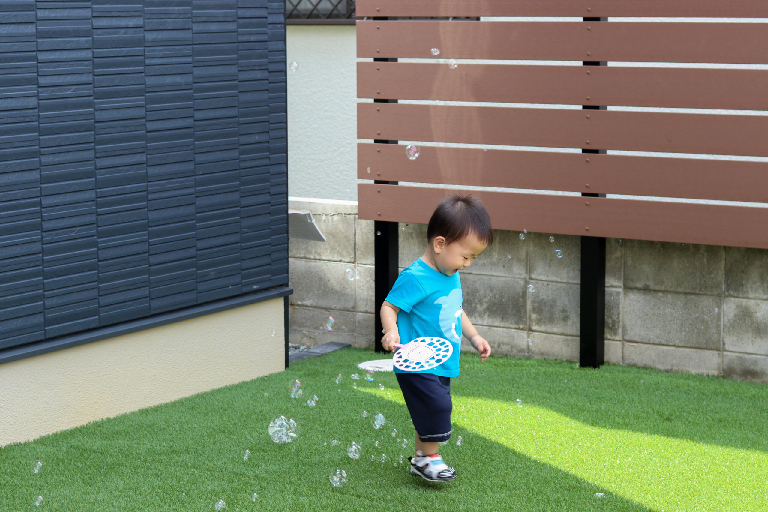 お客様から、お庭でのびのび遊ぶお子様のお写真をいただきました!楽しそうなご様子に、私たちも思わず笑顔に。