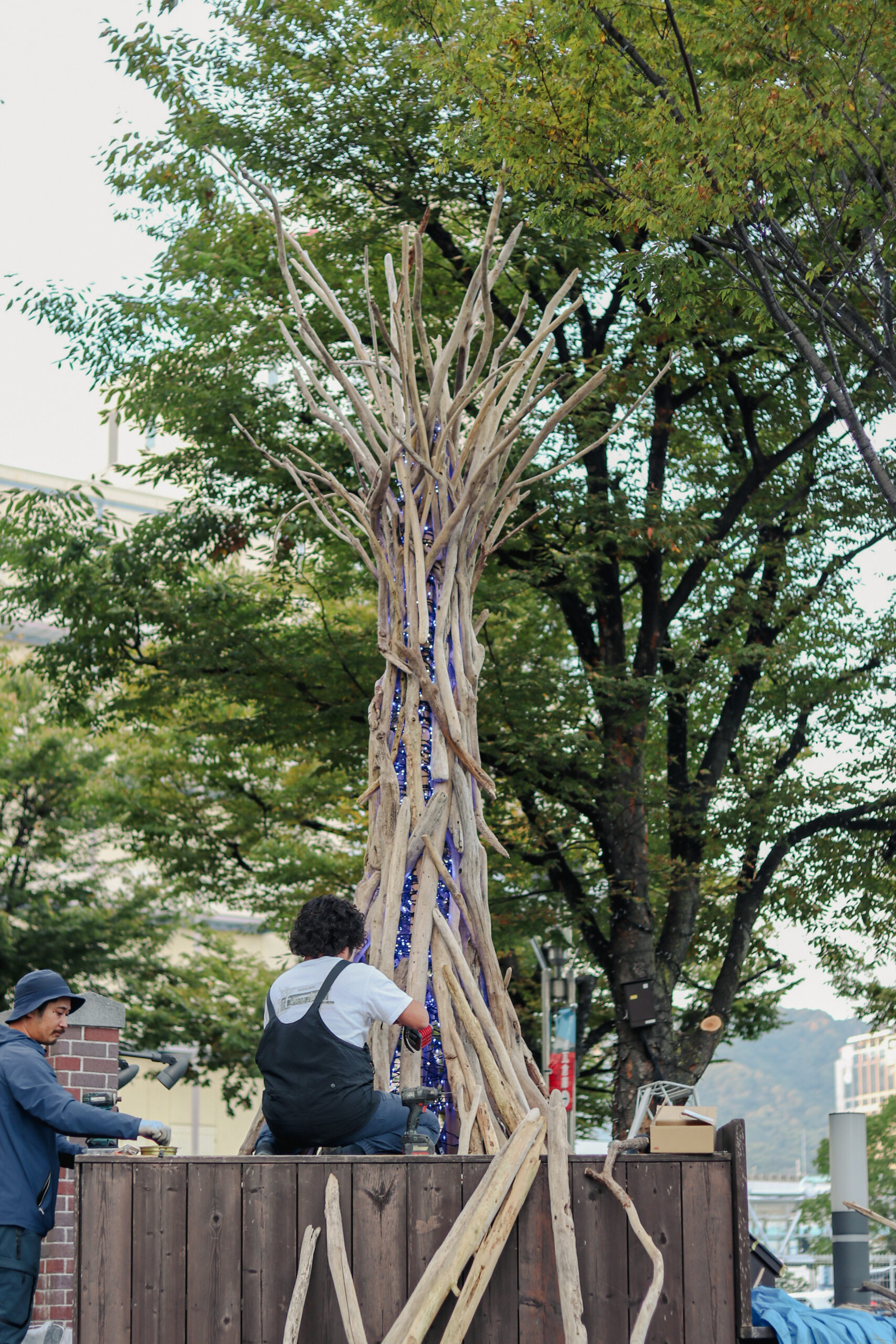 神戸ハーバーランド「KOBE UMIAKARI」イルミネーション&ライトアップにGOOD2 GARDENが制作した 流木ツリー を展示中です。