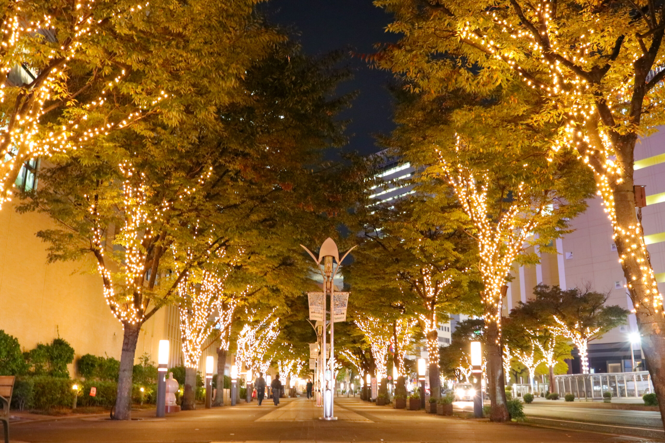 ケヤキ並木のライトアップも重なり、煉瓦倉庫一帯が幻想的な雰囲気に包まれました。